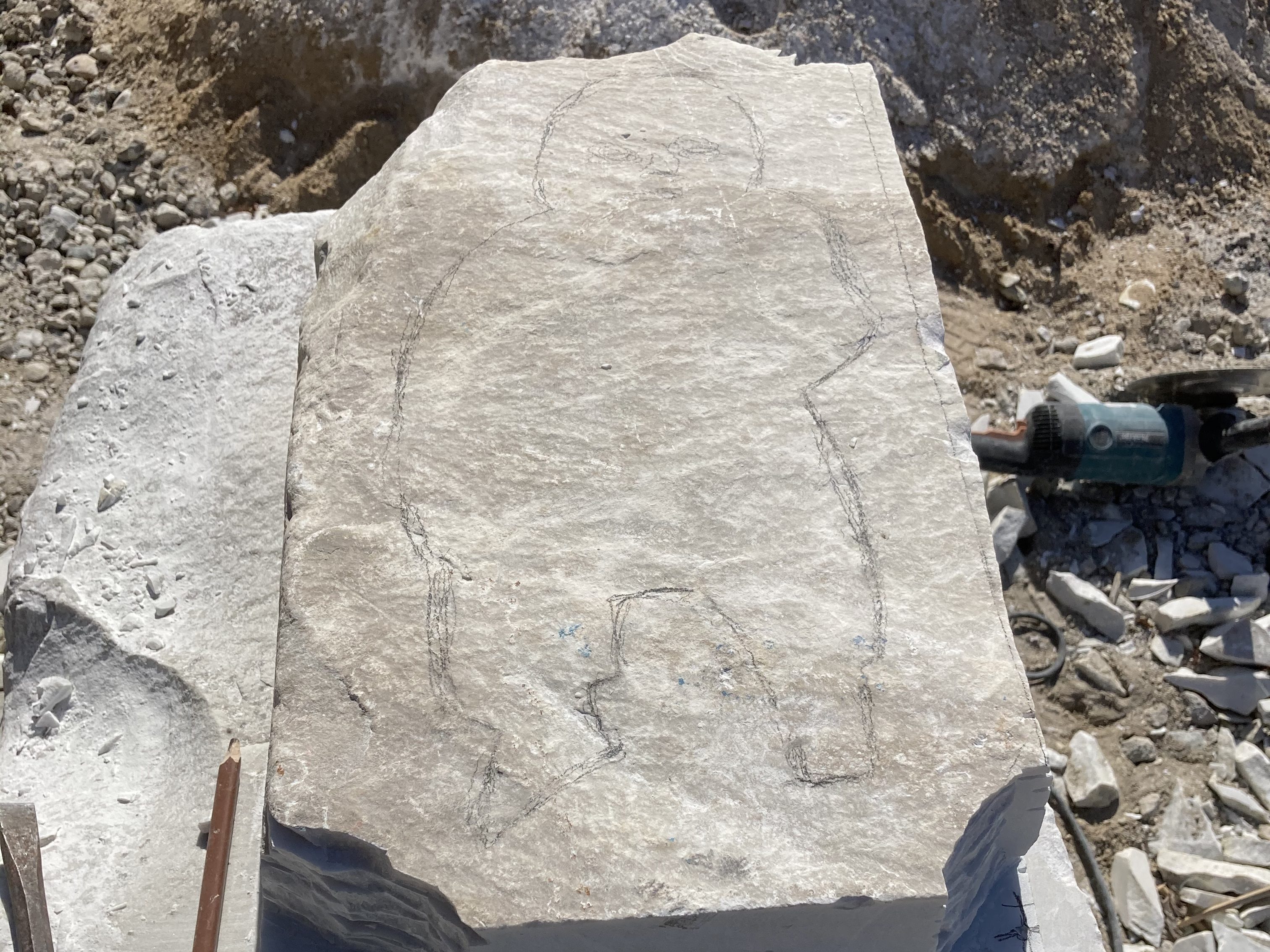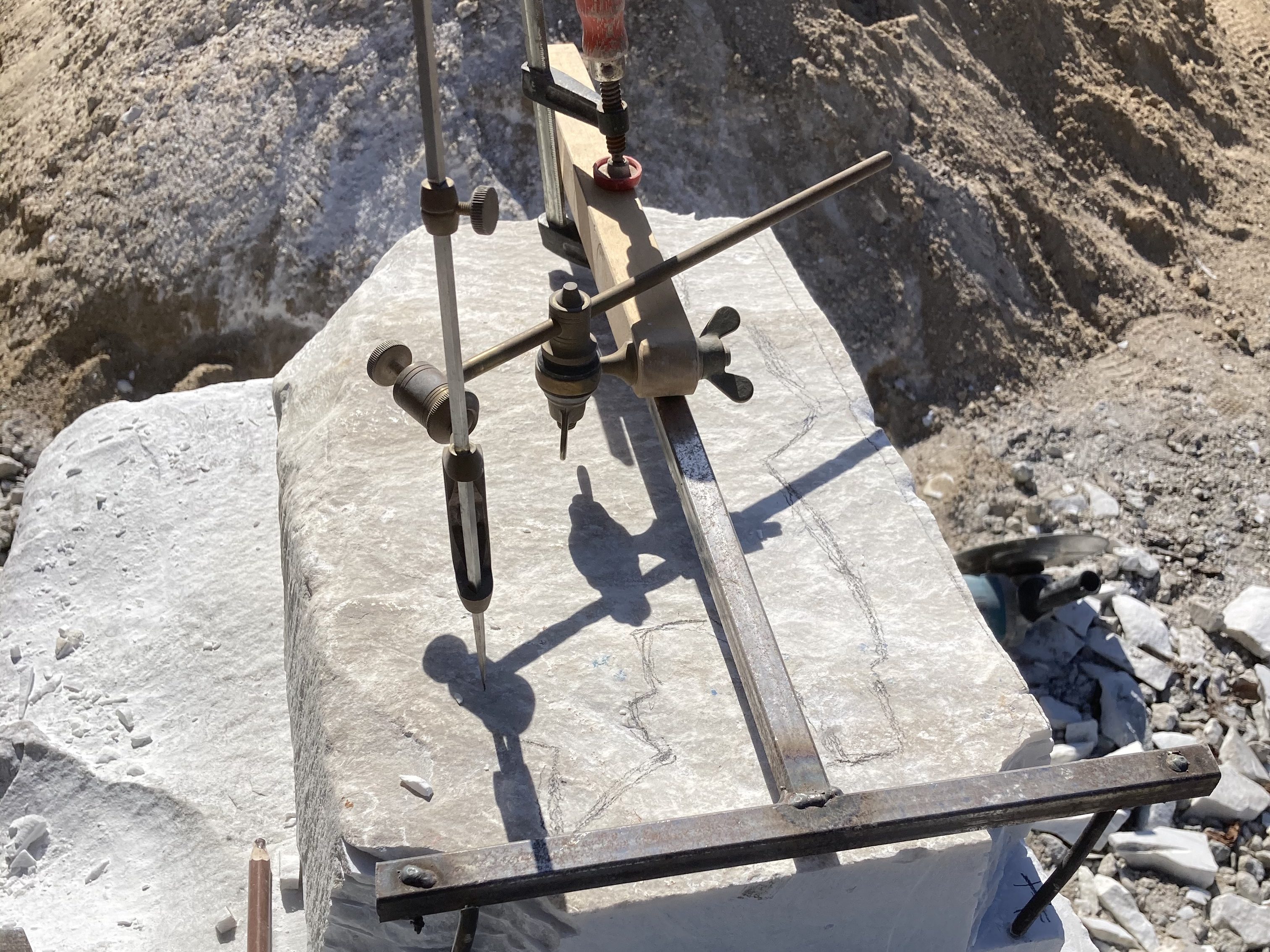 Thousands of points have been measured (marked with a pencil), which are transferred precisely to the marble block.