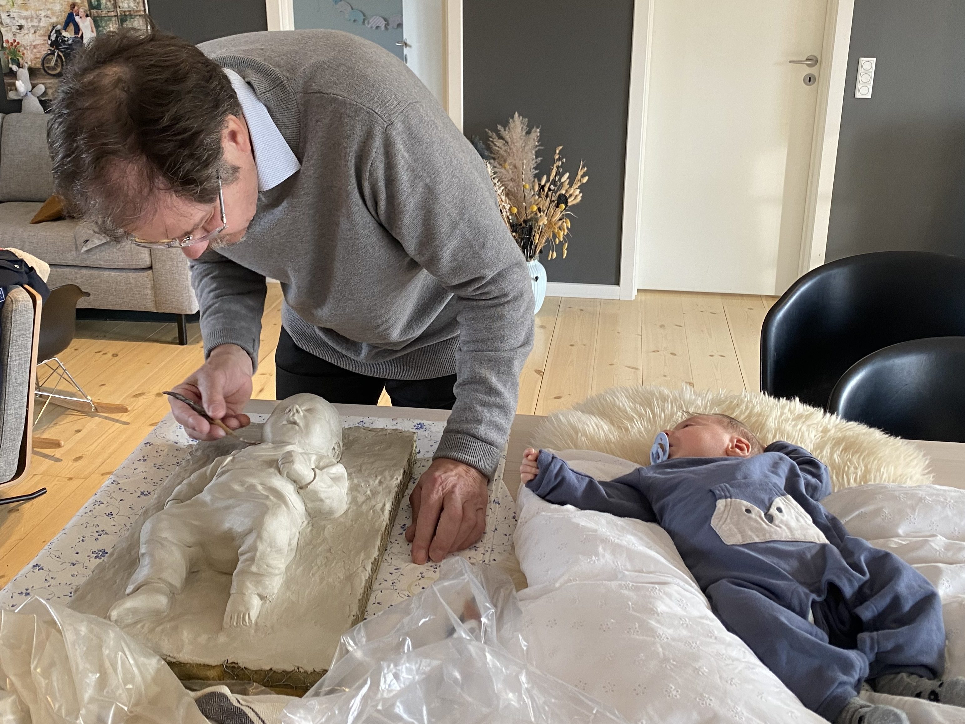 After the person has been visited, photographed and measured, the process of making a draft in clay begins.